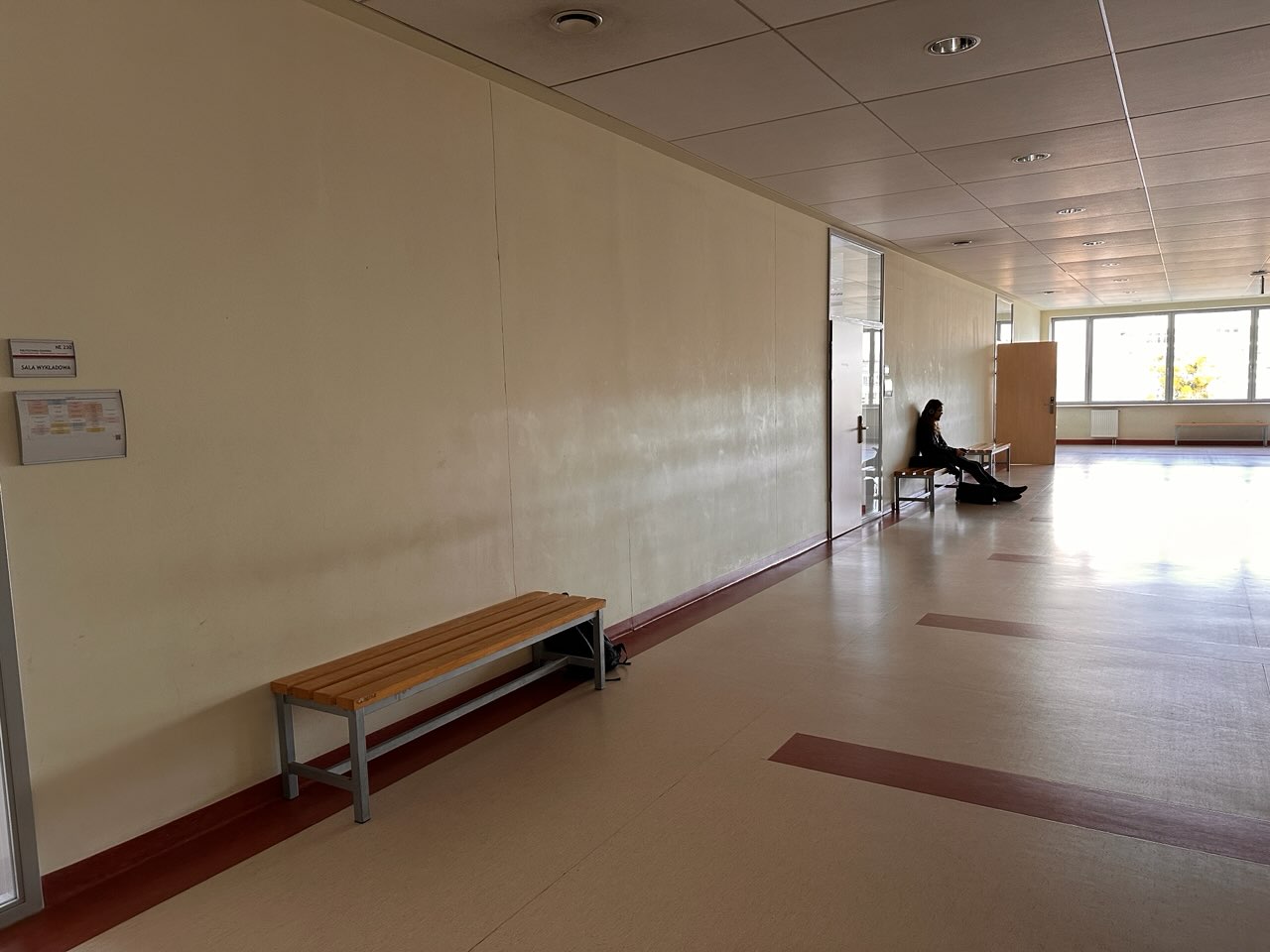 Uzasadnienie: Obecnie korytarze są nieprzystosowane do odpoczynku między zajęciami, ponieważ wyposażone są jedynie w niewielką ilość drewnianych ławek bez oparć. Studenci oraz uczestnicy uczelnianych wydarzeń nie mają wygodnych miejsc do odpoczynku. Wprowadzenie funkcjonalnych kanap poprawi jakość życia społeczności akademickiej, wspierając dobrostan studentów, doktorantów i pracowników oraz tworzenie przyjaznej, zrównoważonej przestrzeni.